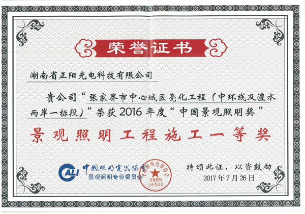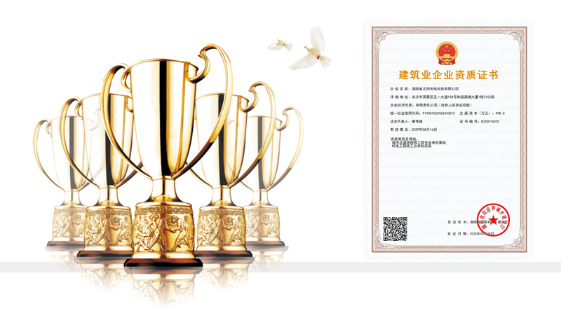 湖南省正陽光電科技有限公司是一家從事亮化工程及大型燈光藝術(shù)的設(shè)計(jì)、制作、安裝和維護(hù)于一體的專業(yè)化公司。公司資質(zhì)齊全、管理嚴(yán)謹(jǐn)、技術(shù)先進(jìn)、實(shí)力雄厚,取得了城市及道路照明工程專業(yè)承包壹級(jí)資質(zhì)、照明工程設(shè)計(jì)專項(xiàng)甲級(jí)資質(zhì)、機(jī)電工程施工總承包貳級(jí)資質(zhì)、施工勞務(wù)等資質(zhì)、國(guó)家高新技術(shù)企業(yè)、國(guó)家“重質(zhì)量·守誠(chéng)信”示范企業(yè)。